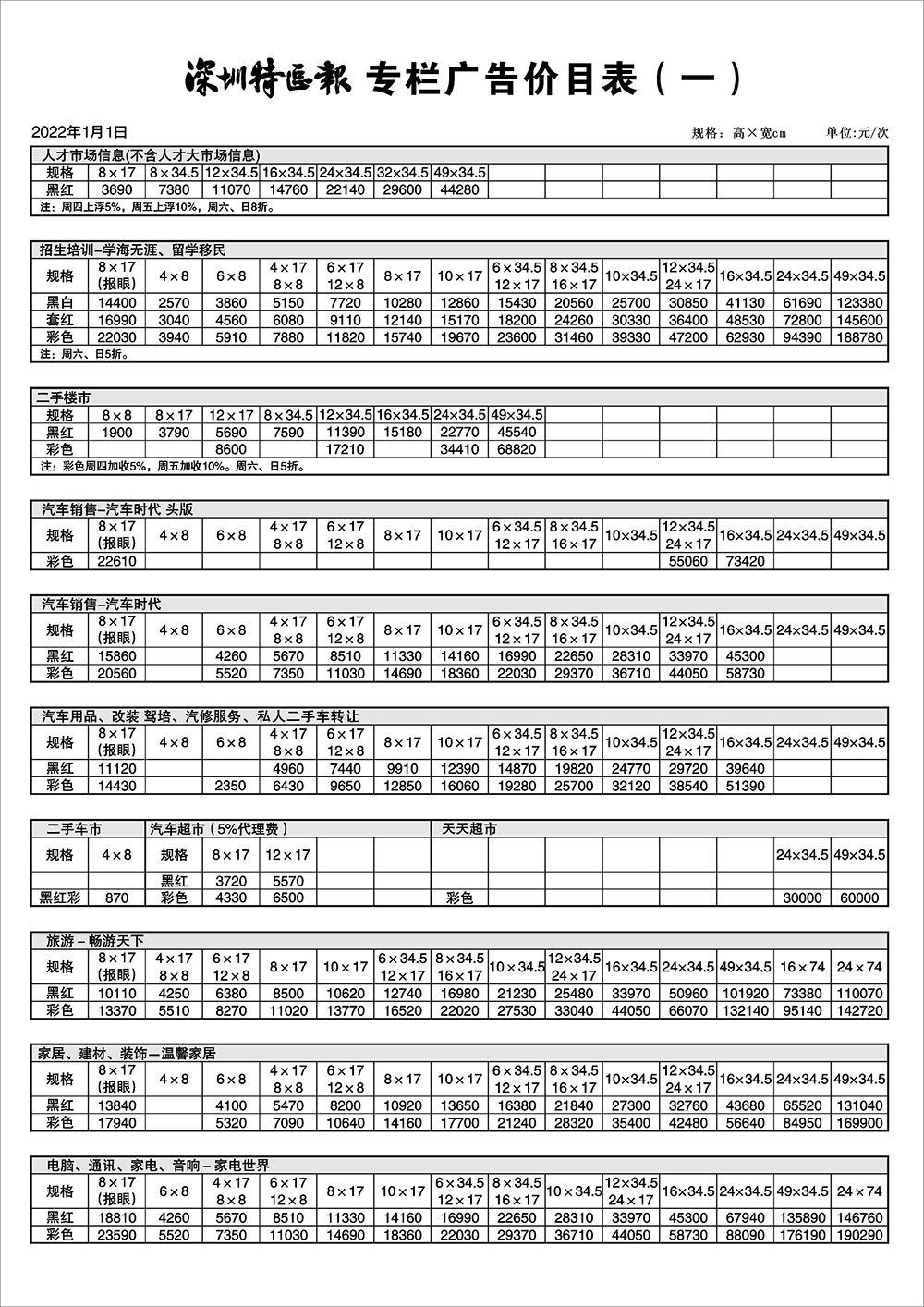 深圳特區(qū)報(bào)廣告認(rèn)刊須知