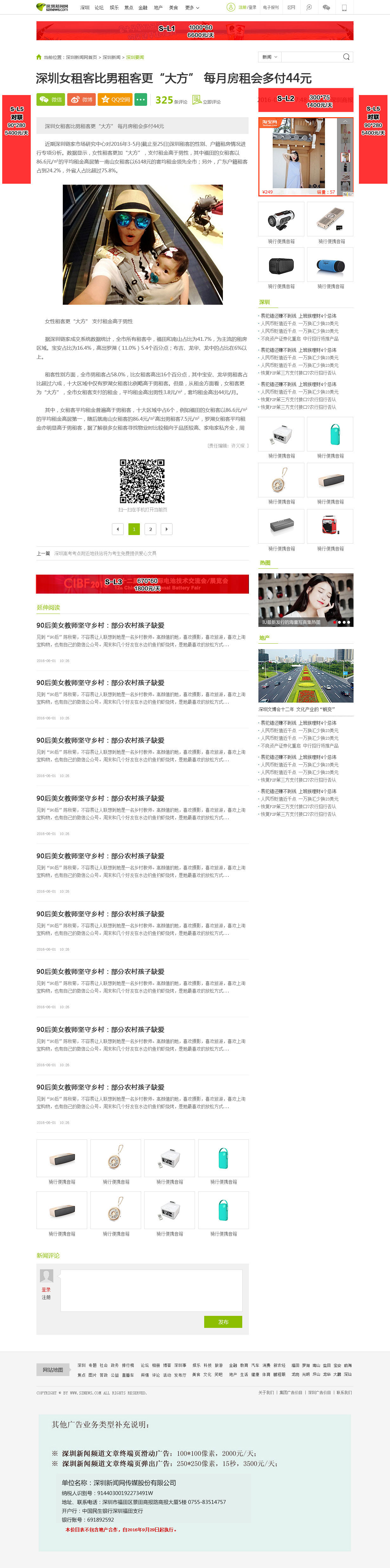 深圳新聞頻道文章終端頁價目表 |