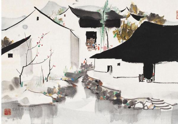 在滿足了基本需求后,孟浩凡才開始考慮,如何為這座古鎮(zhèn)保留傳統(tǒng)江南民居的神韻,又體現(xiàn)出現(xiàn)代學(xué)的美感和創(chuàng)意。他想到了畫家吳冠中。孟浩凡說,比起具象的元素,他更多考慮的是保留“氣質(zhì)”?!氨热缯f你看這色調(diào),色調(diào)是白墻綠瓦,中間有一些灰色系的這種磚,都是老色調(diào)的基底給我們的感覺。這種壓頂?shù)木€條,像吳冠中的畫,都是很抽象的嘛。畫江南民居,他畫出來很抽象的藝術(shù)畫,沒有具象的符號,但是你一看這個(gè)東西它就是江南的,因?yàn)槲蓓數(shù)倪@種曲線、線條,勾勒出了江南的這種俊秀?!?/p>