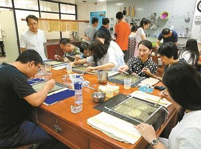 古籍修復技術班學員在學習修復技術。