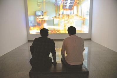 觀眾在觀看多媒體藝術(shù)展