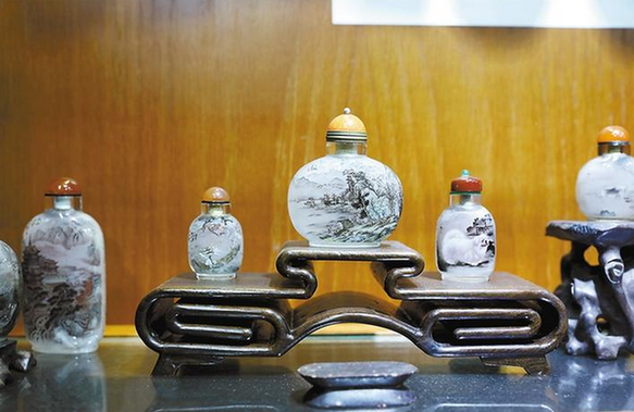 據楊藝介紹,明末清初,鼻煙作為貢品開始傳入我國,這些進貢的鼻煙用玻璃瓶盛裝,以防止其味道散失,并以瓶的大小標示鼻煙計量。王士禎在《晉祖筆記》中記載:“鼻煙以玻璃為瓶貯之。瓶之形象種種不一,顏色具紅黃紫白黑綠諸色,白如水晶,紅如火齊,極可愛玩,以象齒為匙,就象鼻之,遠納于瓶?!彼耐怀鲐暙I就在于,把紙上畫和寫的藝術,經過工具、操作等多方面的革新,改在為玻璃或水晶煙壺內壁反面上作畫,其難、其奇,真可謂巧奪天工。內畫煙壺的創(chuàng)作在光緒年間達到鼎盛。收藏界認為它集中國工藝美術之大成的袖珍藝術,是詩書畫并茂的藝術精品。