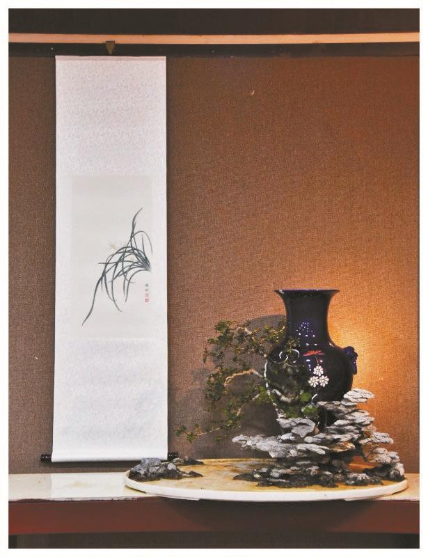 “雙粹”會(huì)展特點(diǎn)是景畫交融,典雅清心的工筆國畫,配上美輪美奐的花瓶盆景,賞心悅目,讓觀者流連忘返。