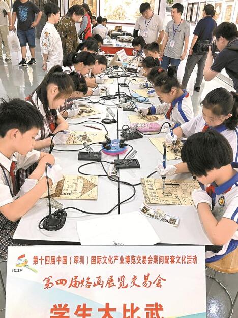 第四屆烙畫(huà)展覽交易會(huì)組委會(huì)負(fù)責(zé)人介紹,過(guò)去一年,光明烙畫(huà)在光明新區(qū)管委會(huì)的大力支持和社會(huì)各界的幫助下,已走進(jìn)部分學(xué)校授課,受到學(xué)生們的歡迎。在第八屆中國(guó)國(guó)際新聞短片節(jié)中,烙畫(huà)得到了國(guó)際友人的了解、認(rèn)可,更得到他們的喜歡和點(diǎn)贊。今年4月6日,光明烙畫(huà)也走進(jìn)了北京大學(xué)校園,得到師生們的一致好評(píng)。為了辦好今年的展交會(huì),組委會(huì)于2018年1月份就開(kāi)始籌備、宣傳、征稿,來(lái)自全國(guó)20多省市的120余名烙畫(huà)藝術(shù)家參加,作品有300余幅。參展作品題材豐富多樣,有人物畫(huà)、山水畫(huà)、動(dòng)物畫(huà)、靜物畫(huà)、歷史畫(huà)等,其中山水畫(huà)中以描繪祖國(guó)大好河山的居多。同時(shí),本屆展交會(huì)分兩大展示區(qū),分別是烙畫(huà)基地展示區(qū)和光明新區(qū)文化館展示區(qū),其中烙畫(huà)基地展區(qū)內(nèi)又分為九個(gè)區(qū)域。此次活動(dòng)安排了烙畫(huà)藝術(shù)家畫(huà)光明,童心的世界才藝表演,烙畫(huà)大比武,特邀國(guó)家級(jí)大師走進(jìn)光明等特色活動(dòng),讓每位參觀者體驗(yàn)具有時(shí)代藝術(shù)特色的烙畫(huà)盛宴。