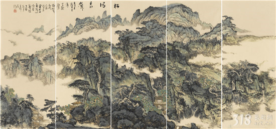 《松風(fēng)泉聲》 山水五聯(lián)屏  69×160cm×5  2018年