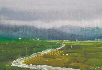 深圳美術(shù)館策展人李原原認(rèn)為,方曉龍的水彩畫作品常常以寬廣的視角展開對山川、大地的寫實(shí)描繪,從容細(xì)膩的筆觸和干凈清爽的色彩蘊(yùn)含著磅礴的氣勢,表現(xiàn)出大自然的靜謐以及自在的土地。