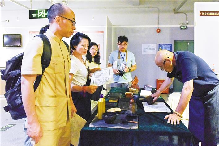 力嘉創(chuàng)意文化產(chǎn)業(yè)園分會(huì)場(chǎng)現(xiàn)場(chǎng)為來(lái)賓拓印文化創(chuàng)意圖案。