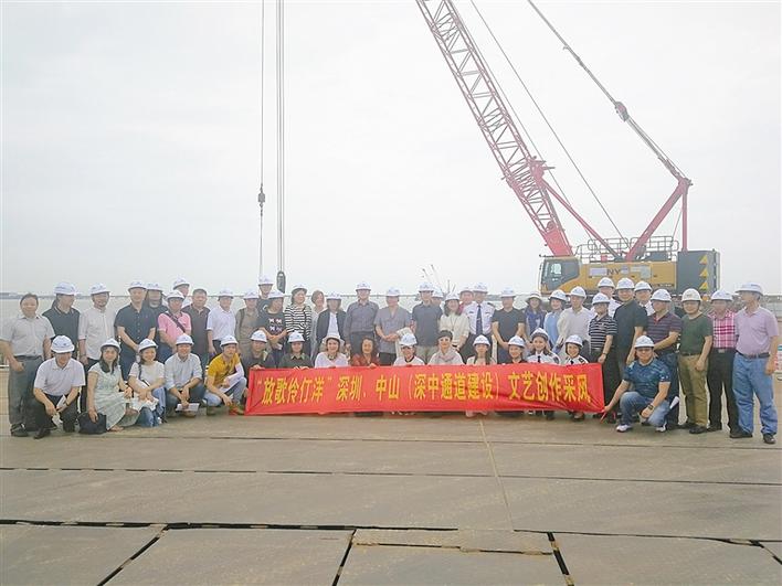 ▲深中兩地文藝家在深中通道建設工地合影