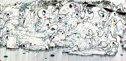描繪蘇州四大園林之一獅子林風(fēng)景的獅子林題材是吳冠中生平最重要的藝術(shù)創(chuàng)作之一,被認(rèn)為是代表吳冠中藝術(shù)生涯承前啟后的重要杰作,囊括了他對西方與東方、傳統(tǒng)與現(xiàn)代、物質(zhì)與精神所有的理解和闡釋。從《獅子林》開始,吳冠中以點(diǎn)、線、面表現(xiàn)山川風(fēng)景的個人畫風(fēng)得以形成。此幅《獅子林》是吳冠中1988年創(chuàng)作的。2011年這幅作品就曾于保利春拍拍出1.15億元,引起不小的轟動。另一幅更為經(jīng)典的《獅子林》收藏在中華藝術(shù)宮,是吳冠中1983年的作品。