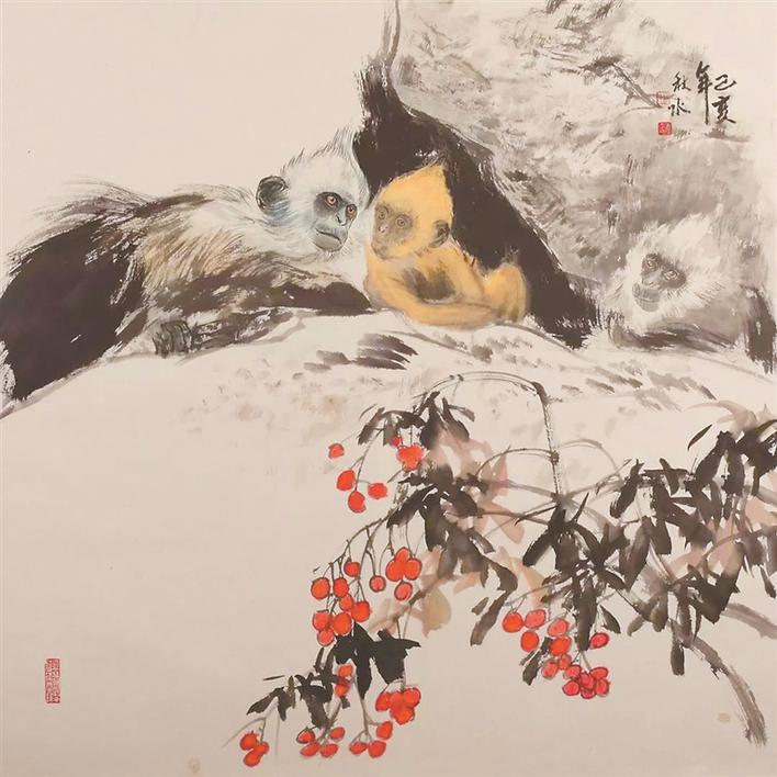 走進(jìn)展廳,觀眾可以發(fā)現(xiàn),白頭葉猴毫無(wú)疑問(wèn)是此次展覽的主角。它們?cè)?00多萬(wàn)年的自然演化中已經(jīng)與廣西崇左的喀斯特石山結(jié)下了不解之緣。如今這一物種也處于瀕臨消失的危境。此次展覽以“我們”為題,從自然生態(tài)、環(huán)境保護(hù)以及社會(huì)發(fā)展角度展現(xiàn)出秋水作為一名藝術(shù)創(chuàng)作者的溫情和關(guān)懷。通過(guò)畫作,他也呼吁人們加強(qiáng)環(huán)保和動(dòng)物保護(hù)意識(shí)。