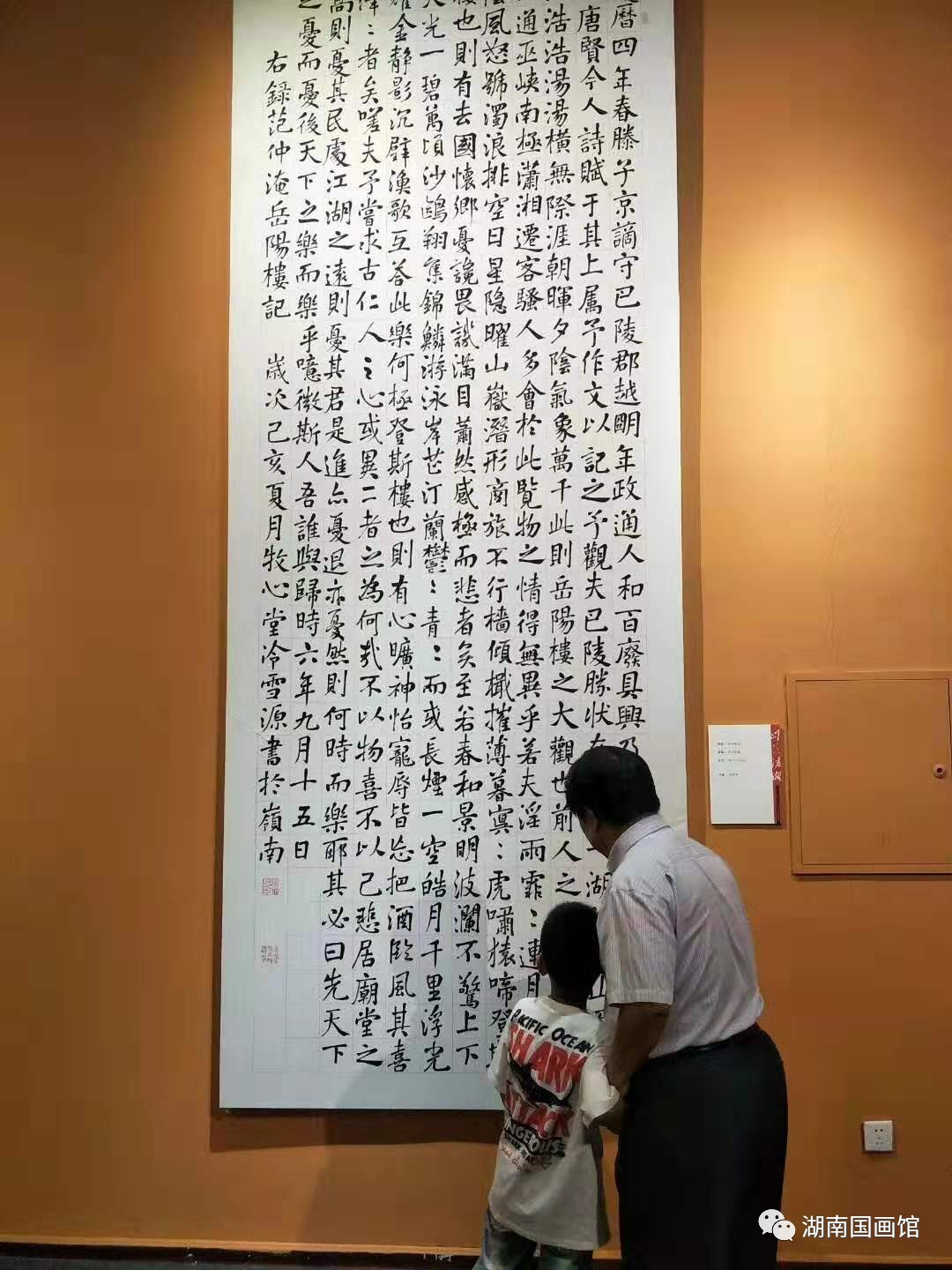此次“問道瀟湘”是由深圳寶安書社、深圳寶安公共文化服務(wù)中心策劃的品牌活動(dòng),是繼問道江右、問道京華、問道周秦、問道河洛、問道燕趙之后的第六次“問道”活動(dòng),旨在帶上作品,通過展覽和交流,虛心請教,增進(jìn)交流。展覽展出了王道國、萬迪龍、陳勝南、李銳、張琦、張綏平、鄭永兵、冷雪源、周志群、陳守斌、彭雙龍、蔣向前12位深圳書法家的100多幅書法精品,涵蓋篆、隸、楷、行、草、篆刻,氣象正大、功力深厚、風(fēng)格多樣、各有專長,既有切合時(shí)政的政治主題,也有自撰詩詞聯(lián)句和題跋作品;既有湖湘歷史題材佳作,也有深圳本土題材作品;既有丈二巨制,又有平尺小品。展覽的亮點(diǎn)是主展廳的九件丈二巨幅作品,從《不忘初心》到《春天的故事》,從《岳陽樓記》到王冕《墨梅》,筆力沉雄,氣象博大,受到與會專家和觀眾的好評!