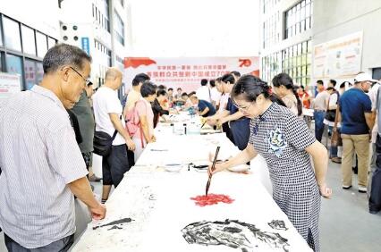 寶安日?qǐng)?bào)2019年9月19日訊 9月18日下午,以“中華民族一家親,同心共筑中國(guó)夢(mèng)——各族群眾共賀新中國(guó)成立70周年”為主題的書畫藝術(shù)筆會(huì)在龍華文化藝術(shù)中心舉行,80多位書畫名家現(xiàn)場(chǎng)揮毫,盡展中華民族文化藝術(shù)瑰寶魅力。