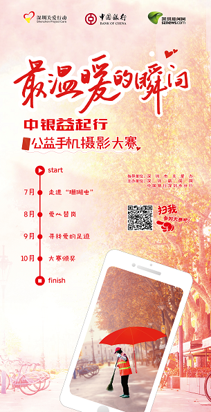 中國銀行深圳市分行相關(guān)負責人表示,本次“中銀益起行”公益手機攝影大賽包含了環(huán)境保護這一主題,此次活動集公益性與知識性為一體,在幫助小朋友們掌握海洋生物知識的同時,也讓更多的小朋友和家長增強保護家園、保護海洋、保護環(huán)境的意識,讓綠水青山可以長存。此外,小朋友和家長們還可以將活動過程中拍攝的照片上傳到網(wǎng)上參與我們的公益攝影大賽,喚醒更多人的環(huán)保意識。