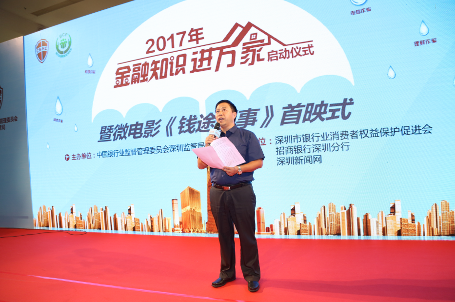 8月27日,為防范金融風(fēng)險,提升金融服務(wù)水平,深圳啟動2017年度銀行業(yè)“金融知識進萬家”宣傳月活動暨微電影《錢途囧事》首映式。