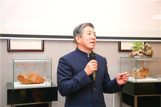 自古書法印章不分家,作品必須蓋印才算完整。本次活動場地提供田黃博物館、希雍天石董事長繆建生為到場嘉賓和校友,受邀分享田黃石科普知識,介紹歷經(jīng)1.8億萬年形成的田黃石種類及特點。 歡聚活動上,田黃博物館特別挑選了一枚“溫、潤、細(xì)、膩、凝、潔” 、印面方正碩大,雙龍雕刻立體,栩栩如生的昌化田黃貫斗雙龍印璽,捐贈給文學(xué)社。 收到如此珍貴的禮物,求是文學(xué)社秘書長樓蓉表示:非常感謝田黃博物館的支持與厚禮,后期將委托機構(gòu)對這塊印石義拍或義賣,所得將以求是文學(xué)社和田黃博物館名義,捐贈給公益項目,會讓這一珍貴的禮物,發(fā)揮更多的社會價值。
