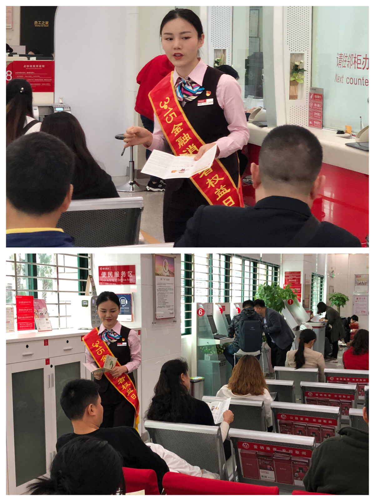 同時在營業(yè)廳積極舉辦微沙龍、金融知識小講座、互動問答等,由黨員代表佩戴黨員徽章、亮明身份,擔任消保宣傳專員,主動利用服務(wù)間隙普及金融消費者八項權(quán)利,提示金融消費者到正規(guī)持牌機構(gòu)、選擇適當?shù)漠a(chǎn)品和服務(wù),并為客戶提供貼心關(guān)懷,送上飲品、零食等。