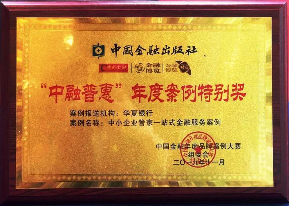 深圳新聞網(wǎng)12月11日訊 2019年11月,在“第二屆(2019)中國金融年度品牌案例大賽”上,華夏銀行獲得“中融普惠”年度案例特別獎。