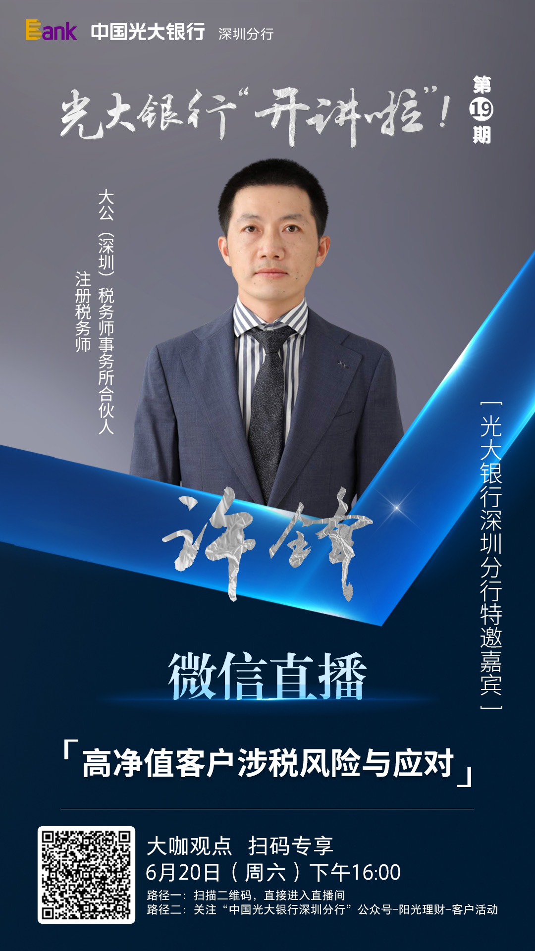 6月20日,光大銀行深圳分行攜手大粵教育,在線開講第十九期《光大銀行"開講啦“!》公益課堂。