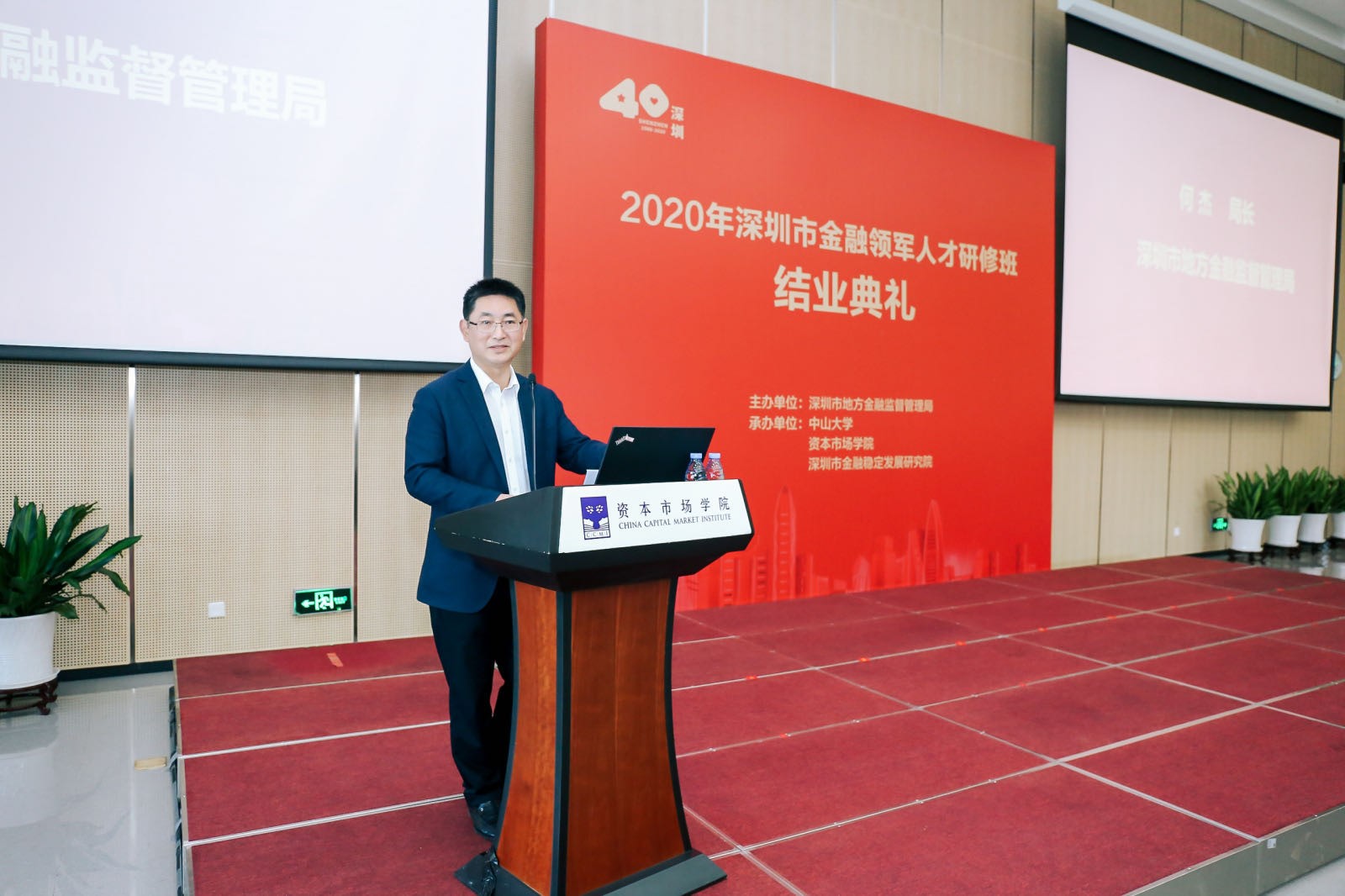 1月30日上午,2020年深圳金融領(lǐng)軍人才研修班結(jié)業(yè)典禮在資本市場(chǎng)學(xué)院隆重舉辦。本期研修班由深圳市地方金融監(jiān)督管理局主辦,中山大學(xué)、資本市場(chǎng)學(xué)院、深圳市金融穩(wěn)定發(fā)展研究院共同承辦。市地方金融監(jiān)管局黨組書(shū)記劉平生主持結(jié)業(yè)典禮并致辭,局長(zhǎng)何杰作總結(jié)講話。資本市場(chǎng)學(xué)院副理事長(zhǎng)、深圳市原副市長(zhǎng)唐杰教授,資本市場(chǎng)學(xué)院黨委書(shū)記陳自強(qiáng)、院長(zhǎng)金立揚(yáng)、副院長(zhǎng)張韶輝,深圳銀保監(jiān)局副局長(zhǎng)陳飛鴻、深圳證券交易所紀(jì)委書(shū)記邢力紅,市地方金融監(jiān)督管理局副巡視員林居正,中山大學(xué)嶺南學(xué)院院長(zhǎng)陸軍教授,以及市委組織部、人民銀行深圳市中心支行、深圳證監(jiān)局有關(guān)領(lǐng)導(dǎo)應(yīng)邀出席,本期研修班近110名學(xué)員參加活動(dòng)。