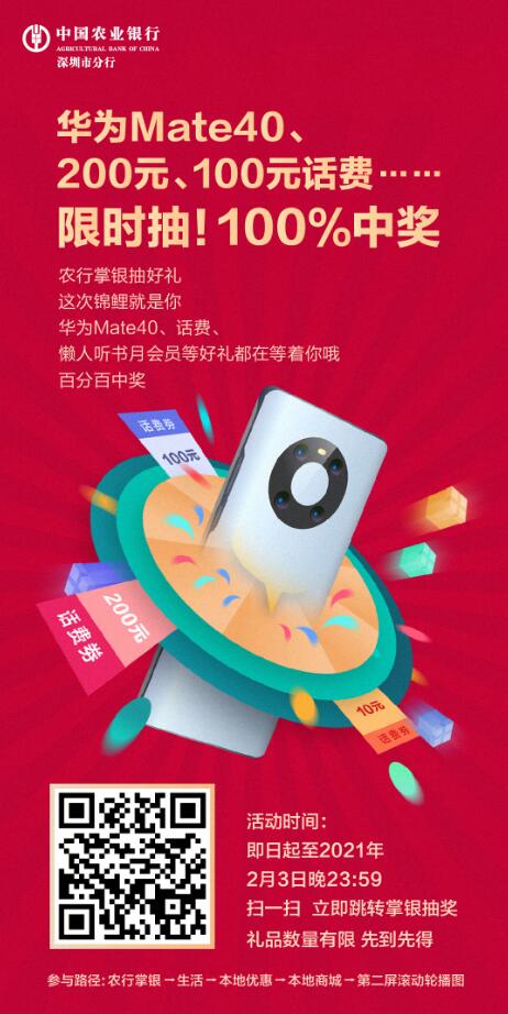 上農(nóng)行掌銀抽華為Mate 40等好禮