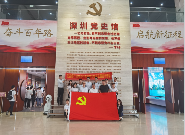 “活動式”教學,增強學習感染力。江蘇銀行深圳分行充分利用深圳紅色教育資源,組織黨員實地瞻仰參觀遺址、紀念場館等,增強學習教育的感染力。同時,組織各黨支部全年與共建單位黨組織策劃開展共學黨史、共辦實事活動,加強互聯(lián)互動,提升江蘇銀行品牌影響力。