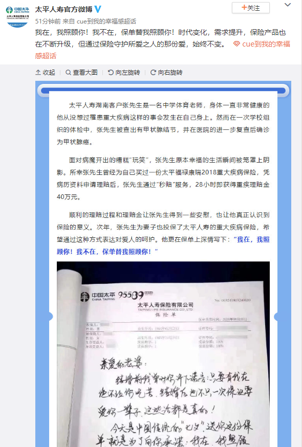 在微博的網(wǎng)絡(luò)互動(dòng)里,太平人壽積極發(fā)動(dòng)內(nèi)外勤及客戶,講述了幸福的生活趣事。