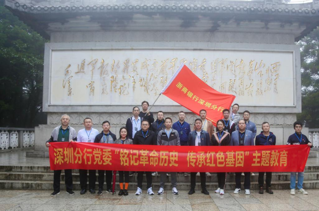 在井岡山烈士陵園,浙商銀行深圳分行黨委書記、行長(zhǎng)樓瞿華帶領(lǐng)全體黨員向革命烈士敬獻(xiàn)了花圈并默哀。
