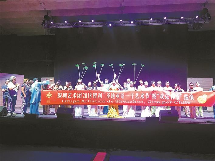 由國家文化部組派,應(yīng)智利圣地亞哥“一千藝術(shù)節(jié)”邀請,深圳藝術(shù)團(tuán)一行30人從 1月5日開始,在布達(dá)維爾、佩尼亞洛倫和圣菲利佩三地連演三場,掀起了當(dāng)?shù)刈放踔袊幕囆g(shù)的熱潮。