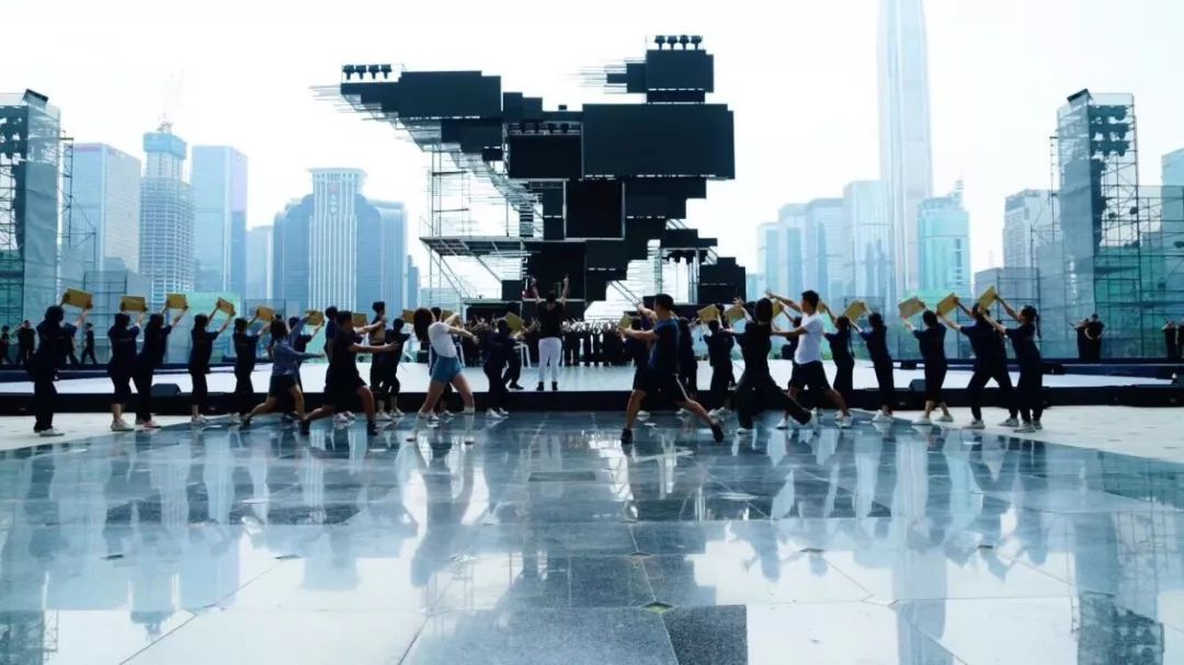 主題曲《新的一天》整首歌以小見大,用年輕上班族的拼搏精神體現(xiàn)深圳人共性,引領(lǐng)時(shí)代進(jìn)步潮流。“ 拒絕空想冒險(xiǎn)/誰不渴望明天/有夢(mèng)就要實(shí)現(xiàn) ”,交織的夢(mèng)想成就了深圳?!? 新的一天就在眼前/我的命運(yùn)我要自己改變 ”,改革開放賦予了這個(gè)時(shí)代勇敢堅(jiān)持的精神。為了排演這個(gè)節(jié)目,導(dǎo)演卓依·馬可尼利和全體演員歷經(jīng)了一個(gè)月的排練,克服了演出場(chǎng)地露天的高溫,在整個(gè)節(jié)目近五分鐘的時(shí)長里,展現(xiàn)了新時(shí)代青年對(duì)于工作的拼勁與堅(jiān)韌、活力和激情,彰顯了剛?cè)嵯酀?jì)、自強(qiáng)不息的深圳精神。