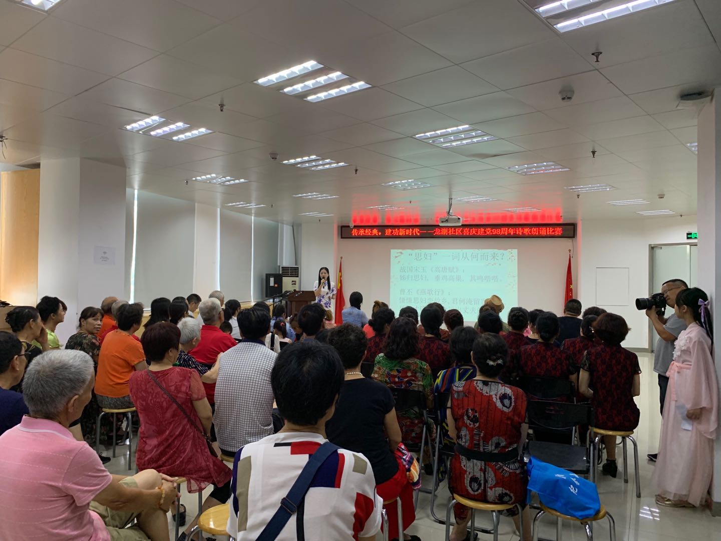 講座開始前,龍湖社區(qū)古詩新韻班的學員傾情奉上國學經(jīng)典新學堂歌——《游子吟》,為本次活動拉開了序幕。接著,龍湖社區(qū)的羅黎靜書記深情致辭,為“新時代中華優(yōu)秀傳統(tǒng)文化”項目走進社區(qū)表示榮幸和歡迎,“人生自有詩意,詩意美在四季。今天來到現(xiàn)場的每一個人都心中有愛,腹中有詩,對生命有著詩一般的向往和追求”,喚醒生命中的詩意,活動的意義也在于此。