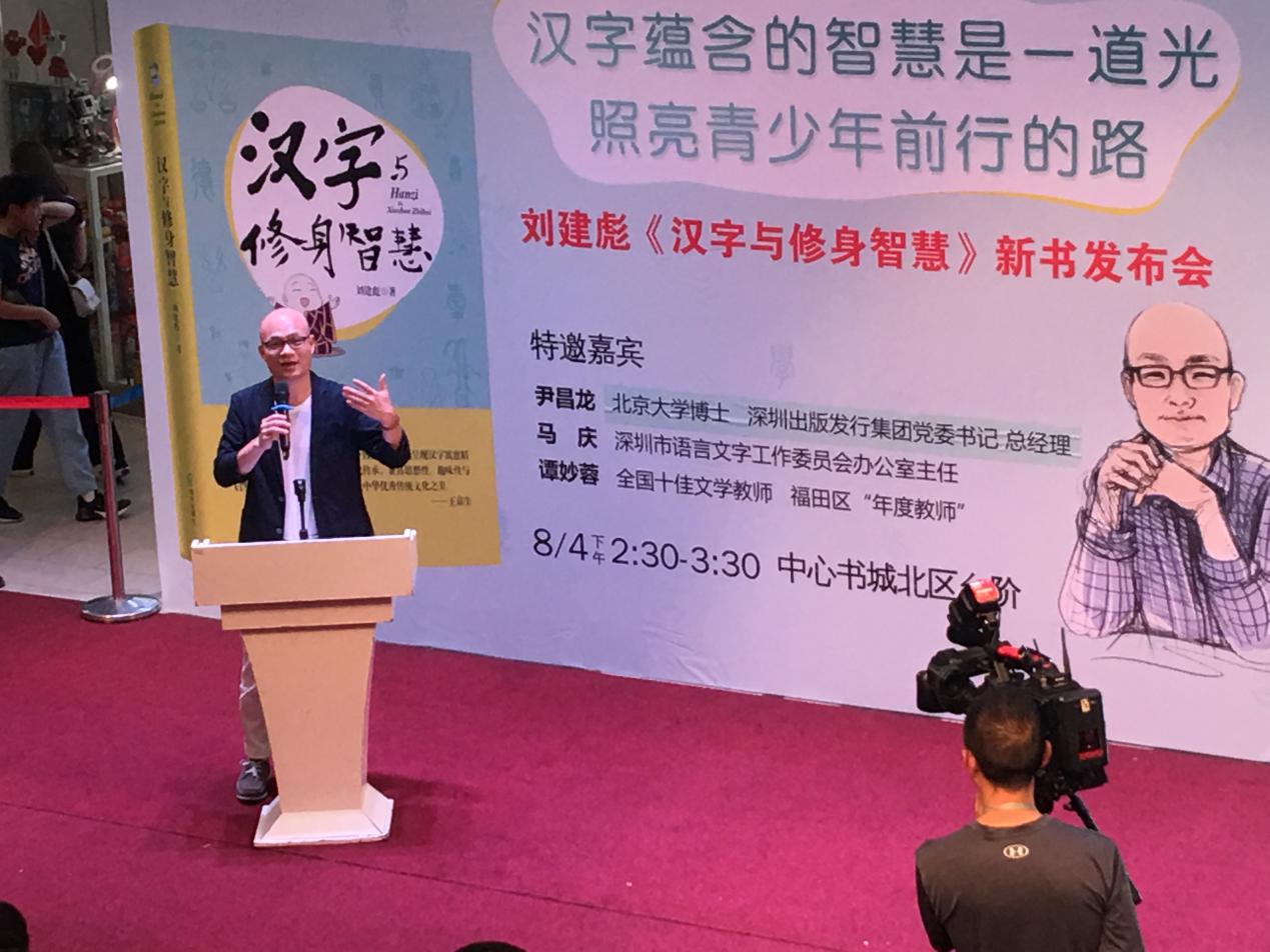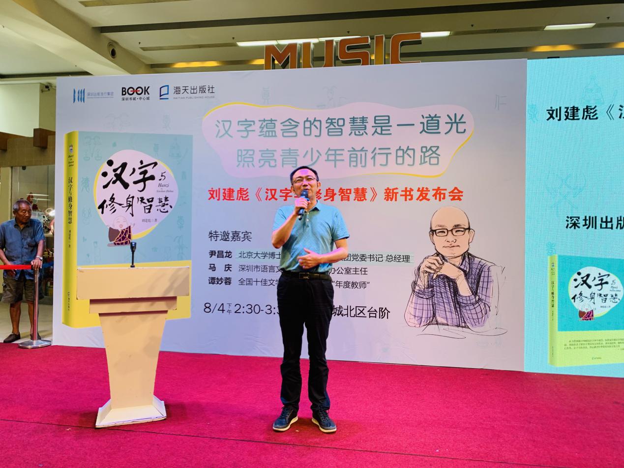 深圳新聞網(wǎng)訊 8月4日下午,壹讀書會(huì)創(chuàng)始人、知名閱讀推廣人劉建彪《漢字與修身智慧》新書發(fā)布會(huì)在深圳書城中心城隆重召開,本次活動(dòng)由海天出版社和深圳書城中心城共同舉辦,北京大學(xué)文學(xué)博士、深圳出版發(fā)行集團(tuán)黨委 書記、總經(jīng)理尹昌龍,深圳市語言文字工作委員會(huì)辦公室主任馬慶,全國十佳文學(xué)教師、福田區(qū)“年度教師”譚妙蓉三位嘉賓蒞臨現(xiàn)場并致辭。本次新書發(fā)布受到市民的熱烈追捧,活動(dòng)開始前中心書城北區(qū)臺(tái)階、過道以及走廊或坐著或站著翹首以盼的閱讀愛好者。