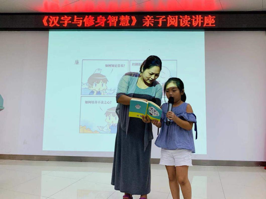 壹讀書會創(chuàng)始人、知名閱讀推廣人、《漢字與修身智慧》作者劉建彪先生作為講座的主講人,準(zhǔn)備了“修身三十六字口訣”和漢字的漫畫,以“互動為主,講授為輔”的方式,讓現(xiàn)場親子共讀一本書,共同感受漢字的力量。