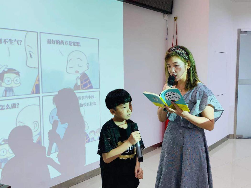 現(xiàn)場親子通過修身口訣總體把握了書籍所選的三十六個漢字,也初步體會到漢字蘊含的修身智慧。接著,在主講人的邀請下,參加活動的親子一一上臺,對照書中的漢字漫畫進(jìn)行角色扮演,展開親子對話的同時身臨其境感受漢字的哲思性。每一位小朋友上臺展演,或活潑開朗、充滿自信地配合家長完成對話,或羞怯地在現(xiàn)場聽眾的掌聲鼓勵下突破自己。