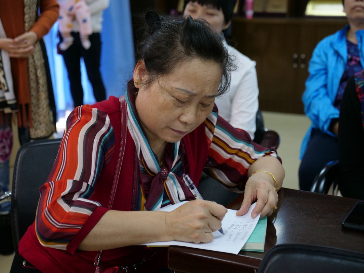 活動(dòng)還沒開始,工作站黨群活動(dòng)中心的多功能室已經(jīng)坐滿了前來參加活動(dòng)的社區(qū)居民,“我們從社區(qū)群里獲悉今天的講座,覺得很新穎,很有意義,特地帶小孩來參加?!倍〈蠼阏f。