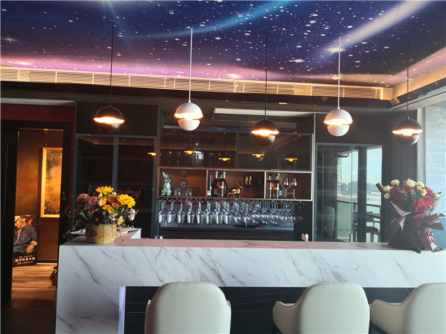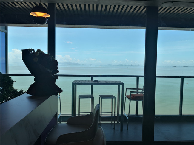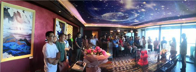 樊鴻賓美術(shù)館座落在珠海市香洲區(qū)內(nèi),旁接情侶路,目眺鳳凰灣,一派浪漫情調(diào),真是一塊滋養(yǎng)藝術(shù)的風(fēng)水寶地。展館所在的天宸大廈十六樓。面朝大海,視野開闊,藍(lán)天白云,碧海揚帆,讓人心曠神怡。與此同時,室內(nèi)樂聲輕伴、紅酒飄香,此景、此情映襯之下,緩步巡看展品,或細(xì)細(xì)靜賞佳作,自然而然有一份莫名舒適的藝術(shù)享受。
