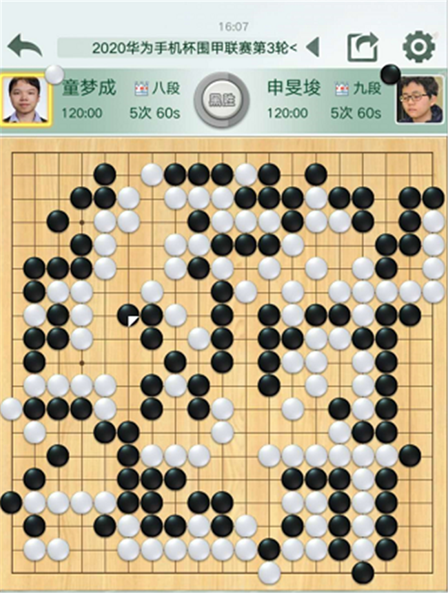 二臺,主將申旻俊執(zhí)白對陣童夢成。局勢一直接近。白126、132連續(xù)走了小棋,黑開始領先。