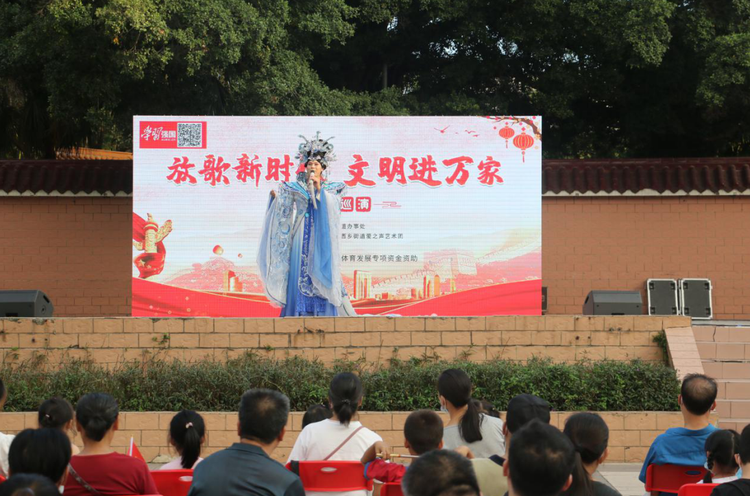 “放歌新時代 文明進(jìn)萬家”文藝巡演由深圳市寶安區(qū)西鄉(xiāng)街道辦主辦,深圳市寶安區(qū)西鄉(xiāng)街道愛之聲藝術(shù)團(tuán)承辦,寶安區(qū)宣傳文化體育發(fā)展專項資金資助。來自愛之聲藝術(shù)團(tuán)的深圳一線文藝工作者們通過文藝表演的形式為廣大居民奉獻(xiàn)精彩的文藝大餐,用群眾喜聞樂見的形式展示西鄉(xiāng)發(fā)展變化,再現(xiàn)有志之士在西鄉(xiāng)干事創(chuàng)業(yè)、成就夢想的情景,并宣傳了黨的十九屆五中全會精神,深受群眾歡迎。