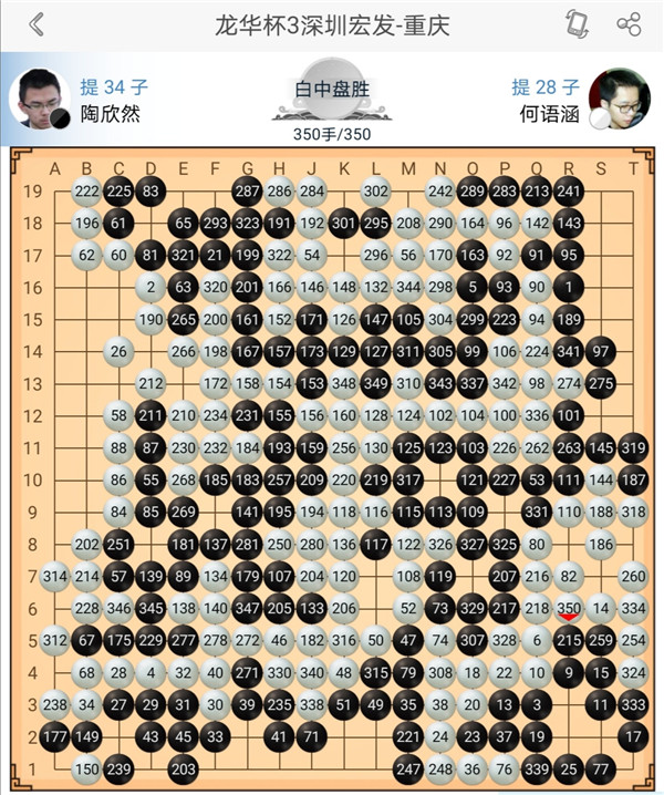 一臺(tái)戎毅執(zhí)黑對(duì)陣?yán)钴幒?,右上?zhàn)斗后黑棋稍有優(yōu)勢(shì),之后黑棋沖擊中央白棋過(guò)分,應(yīng)該慢慢收官,白棋正確應(yīng)對(duì),戰(zhàn)斗中便宜后獲得勝利。二臺(tái)主將時(shí)越執(zhí)白對(duì)陣等級(jí)分排名第二的楊鼎新,中盤(pán)黑棋打入右邊后形成亂戰(zhàn),白棋失誤比黑棋更多,戰(zhàn)斗結(jié)束進(jìn)入官子時(shí)黑勝勢(shì)。