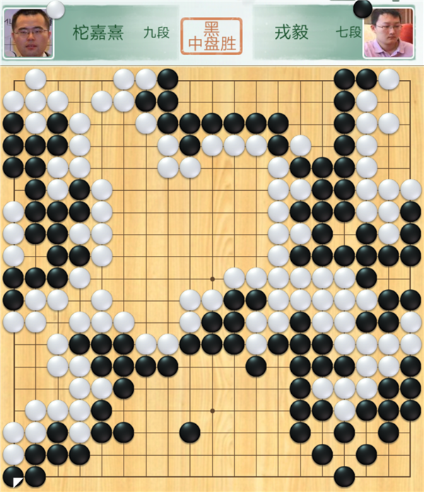 不過,接下來喜訊再次傳來:戎毅快棋執(zhí)黑贏了世界冠軍柁嘉熹。深圳龍華隊(duì)至此奠定勝局,至少是2:2主將勝,拿兩分。這一局,中盤時(shí)白棋在中央尋求作戰(zhàn),黑棋正面應(yīng)對則局面有利。實(shí)戰(zhàn)黑棋避戰(zhàn)搶占右邊,中央白棋先動手后白棋領(lǐng)先。但在之后官子爭奪戰(zhàn)中,白棋失誤頻頻,黑棋遂幸運(yùn)小勝。