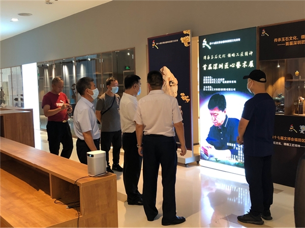 活動(dòng)開展期間,深圳市民協(xié)專職副主席張晉文、深圳市文創(chuàng)體社會(huì)組織黨委第一書記、深圳市群眾文化學(xué)會(huì)會(huì)長(zhǎng)楊素賢、深圳市深港文藝家交流協(xié)會(huì)主席、福田區(qū)文化議員王廉運(yùn)等多位嘉賓參觀了匠心藝術(shù)展,陳宗藝現(xiàn)場(chǎng)介紹了玉雕作品,中國(guó)工藝美術(shù)大師錢高潮、中國(guó)工藝美術(shù)大師裴永中等也前來(lái)參觀交流。