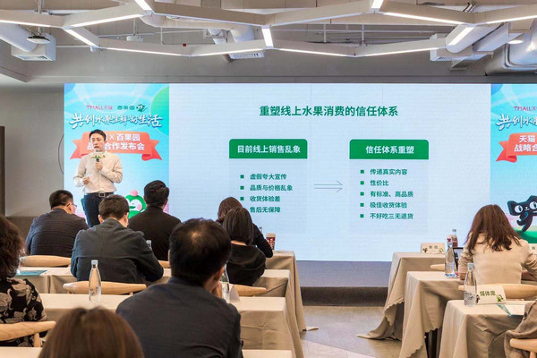 見圳客戶端·深圳新聞網(wǎng)2019年11月30日訊 11月29日,天貓與百果園在深圳阿里中心舉行戰(zhàn)略合作發(fā)布會(huì),天貓大食品總經(jīng)理無(wú)齡、大食品果蔬冰運(yùn)營(yíng)負(fù)責(zé)人思豪,百果園集團(tuán)副總裁焦岳、電商負(fù)責(zé)人孫鵬出席會(huì)議并發(fā)表演講。本次發(fā)布會(huì)以“共創(chuàng)水果生鮮好生活”為主題,雙方計(jì)劃通過(guò)優(yōu)勢(shì)互補(bǔ)和資源整合,從水果到生鮮進(jìn)行全面深入的戰(zhàn)略合作。