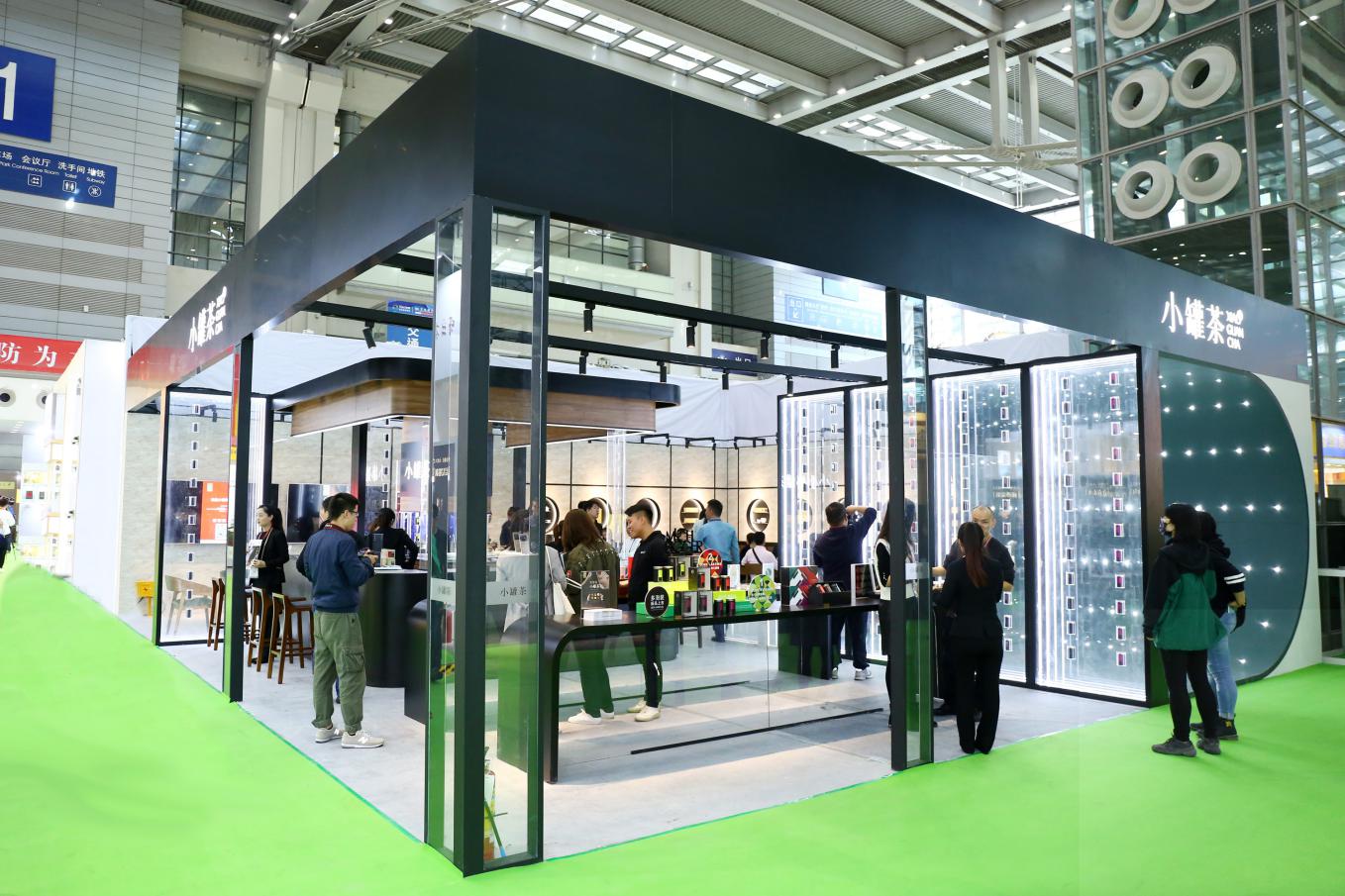 在本次深圳茶博會(huì),位于1號(hào)館 T117的小罐茶展區(qū)為展會(huì)增添了別樣的新氣象,整個(gè)展區(qū)設(shè)計(jì)時(shí)尚,極富審美沖擊力。在布置當(dāng)中,小罐茶以黑、白、木色調(diào)為背景,直線與曲面融合交接,并將小罐作為整個(gè)空間陳列的核心元素,使產(chǎn)品有機(jī)地嵌入整個(gè)展示區(qū)域,呈現(xiàn)出和諧的線條美和簡潔通透的未來感,現(xiàn)代概念十足,宛若一場前沿的時(shí)尚大秀。