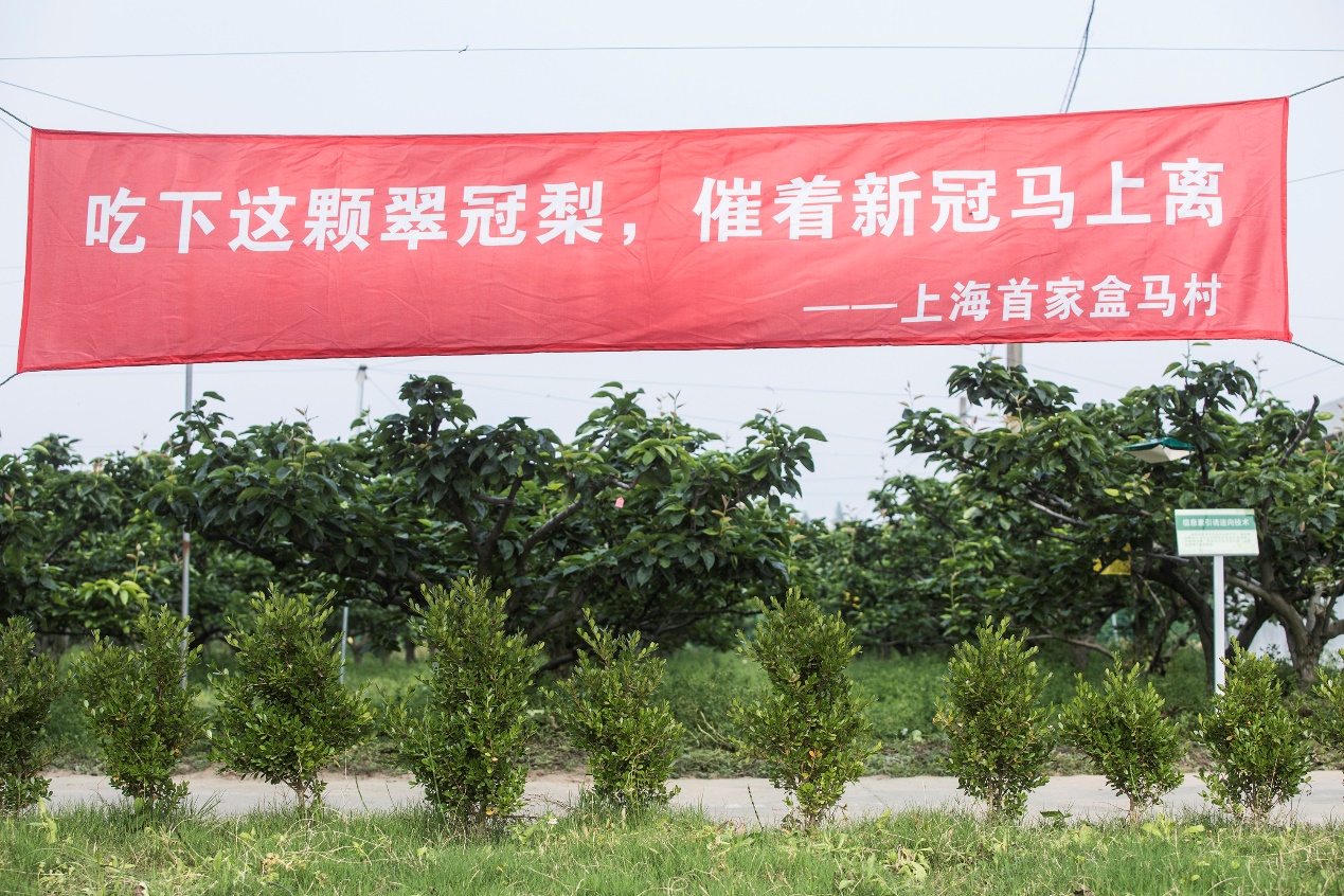 (2020年5月13日,上海首個盒馬村亮相,該地是阿里巴巴翠冠梨數(shù)字農(nóng)業(yè)基地)
