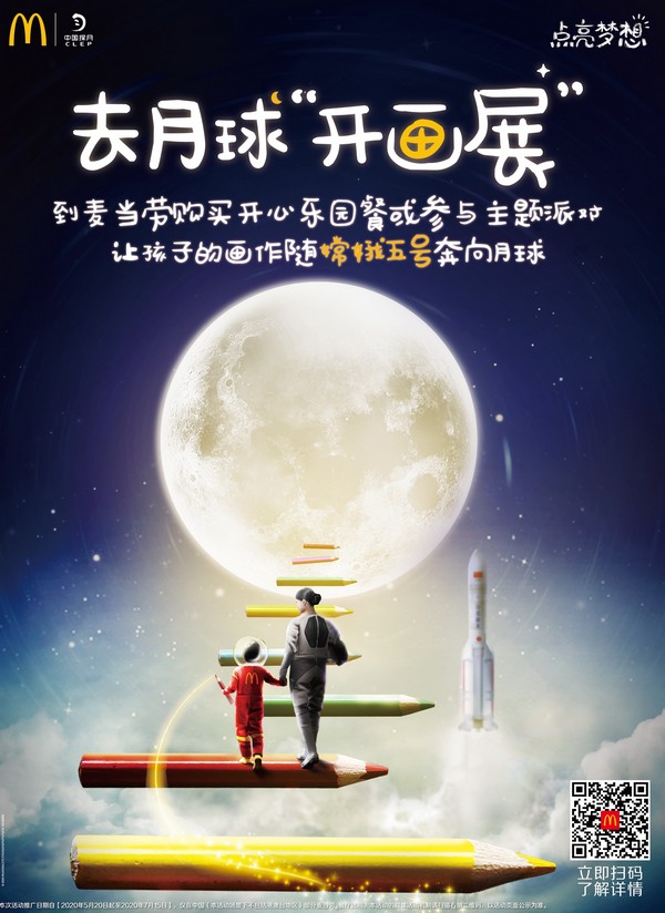 麥當(dāng)勞中國(guó)與“中國(guó)探月”合作,讓兒童夢(mèng)想畫(huà)作隨“嫦娥五號(hào)”奔向月球。