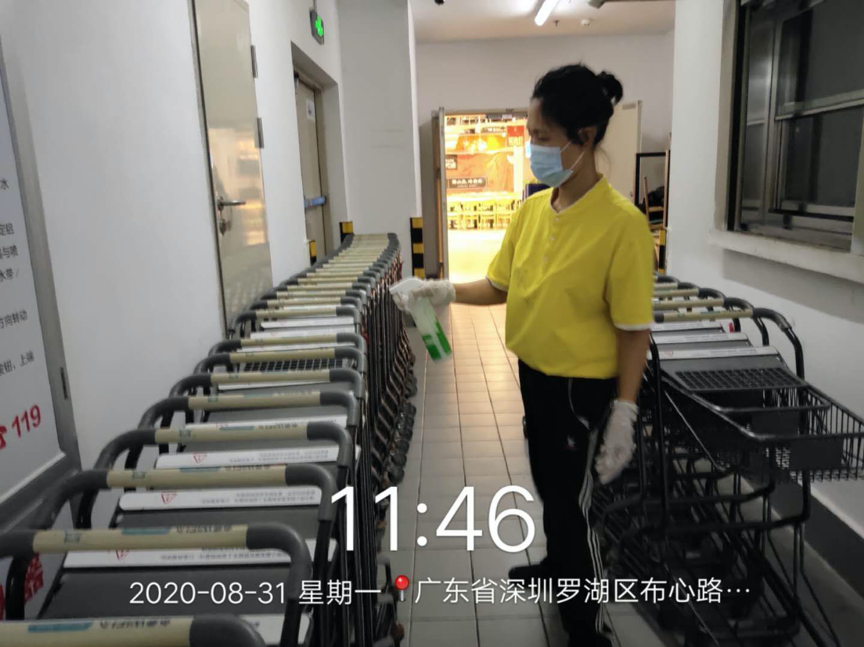 8月31日,深圳盒馬水貝店,工作人員對(duì)購物環(huán)境進(jìn)行消殺。