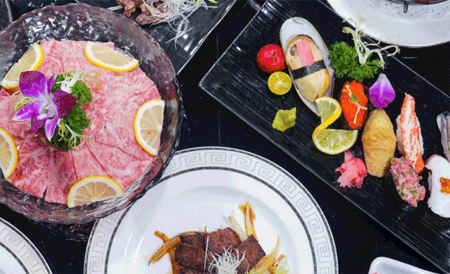 薄至0.1mm的澳洲雪花牛肉、主廚力推的招牌法式鵝肝、烤物之魂網(wǎng)燒牛肉、鐵板燒烤、手握壽司......110+款精致日料任點任食,鋪滿一大桌,實現(xiàn)日料自由,分分鐘吃出1000+的日料既視感。