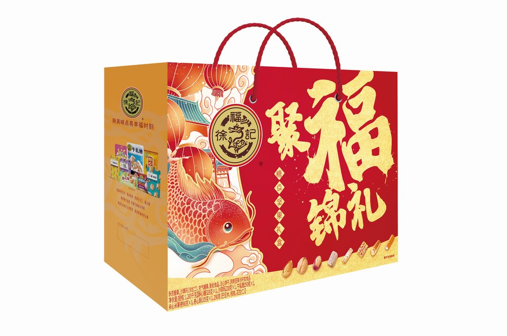 徐福記是多品類制造/銷售的休閑零食巨頭品牌之一,其產(chǎn)品包括沙琪瑪、糖果、糕點(diǎn)、巧克力、果凍布丁五大類,利用多樣品項(xiàng)、多元品類的優(yōu)勢(shì),保持經(jīng)典糖點(diǎn)產(chǎn)品外,還大力推出餅點(diǎn)產(chǎn)品,每一款都是福氣滿滿。根據(jù)凱度的家戶采購(gòu)資料顯示,2019年,餅點(diǎn)的市場(chǎng)規(guī)模是糖點(diǎn)將近4倍。 主推的“聚福錦禮”綜合禮箱,就是以餅點(diǎn)為主打的產(chǎn)品組合,另外還有近幾年大火的芝士零食產(chǎn)品,內(nèi)含徐福記5款芝士口味的餅點(diǎn)產(chǎn)品組合成了“好多芝士”禮罐,是市面上少有的多品類的芝士禮罐組合。在糖點(diǎn)上,繼續(xù)以經(jīng)典酥心糖和新年糖桶為主打,同時(shí)針對(duì)30-40元的空白價(jià)格帶,推出了一款新品“果Q彈大福盒”,橡皮糖單包上印著6款吉祥字,可以邊吃邊自由組合成專屬祝福,好吃又好玩。除了大眾喜愛的產(chǎn)品外,還有走高端化的巧克力禮盒——迪拜進(jìn)口奇巧開運(yùn)禮盒,該禮盒加入了“盲盒“元素,盒子加上金扇造型,打開是隨機(jī)的“開運(yùn)、大吉、大利、暴富”的吉祥字樣。