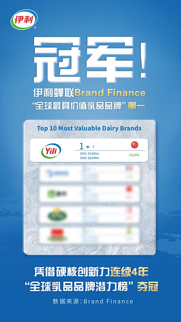 伊利為消費(fèi)者的傾力付出得到了越來越多消費(fèi)者的認(rèn)可,在全球的品牌價(jià)值也日益凸顯。在國際權(quán)威品牌價(jià)值評估機(jī)構(gòu)Brand Finance發(fā)布的榜單中,公司更是蟬聯(lián)“全球最具價(jià)值乳品品牌10強(qiáng)”第一名,并連續(xù)4年在“全球乳品品牌潛力榜”中奪冠。
