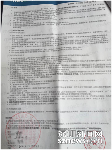 合同上標(biāo)明著“超過10天將不予辦理任何理由的退學(xué)申請(qǐng)”