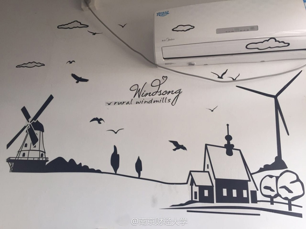 墻上一幅戴著眼鏡的小狗素描圖格外引人注目,它是由602舍長(zhǎng)涂貴平親手畫的?!斑@幅畫還是去年自己參加了一個(gè)帶有公益性質(zhì)的畫畫班學(xué)的,我也沒想到能畫成這樣?!眮碜再F州的涂貴平害羞地說,其實(shí)裝飾寢室的初衷很簡(jiǎn)單,錢就花了300塊不到,主要是希望大學(xué)四年能住在干凈的環(huán)境。